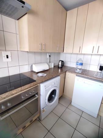 Modern Kitchen with a hob, undercounter oven, and appliances included dishwasher, front loader washing machine, and fridge!