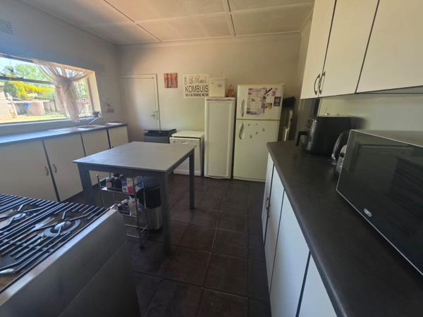 This home offers plenty of potential with a spacious yard, swimming pool and tiled patio featuring an outside braai perfect for entertaining. The house has beautiful parquet flooring though out and a well fitted kitchen with a gas stove.