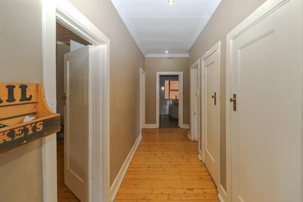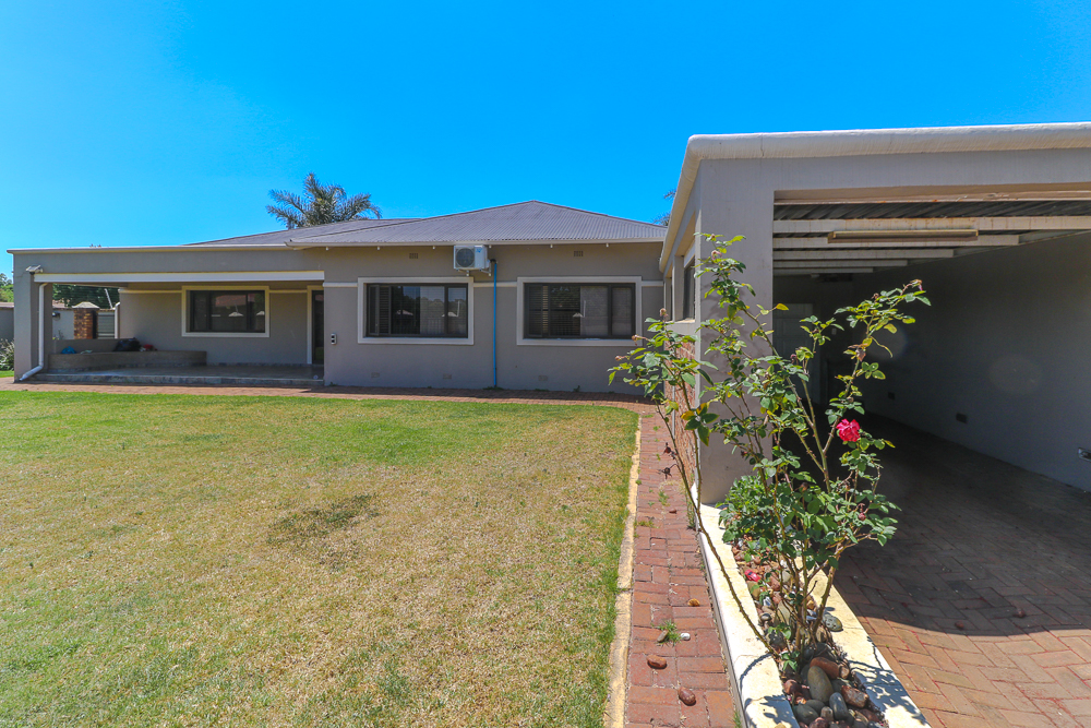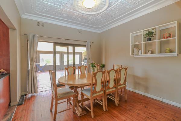 Both the dining room and TV room open onto two inviting tiled patios, ideal for relaxed family gatherings or entertaining guests while overlooking the sparkling swimming pool and well-kept garden. The home offers four generously sized bedrooms with built-in cupboards, serviced by a neat full bathroom.