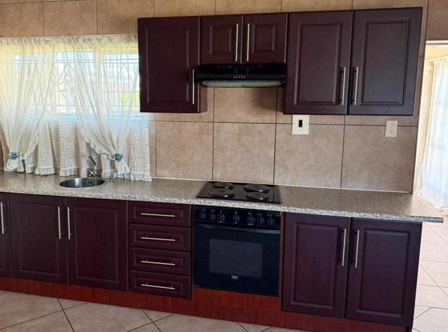 The spacious interior boasts a practical layout, starting with a well-equipped kitchen that''s truly the heart of the home. You''ll love the modern dark wood cabinetry, complemented by speckled granite-look countertops, and integrated appliances including a built-in oven, hob, and extractor fan. The durable tiled floors and walls ensure easy maintenance, while natural light streams in through the windows. Adjacent to the kitchen, you''ll find a comfortable lounge and a dedicated dining room, perfect for both everyday living and hosting friends and family.