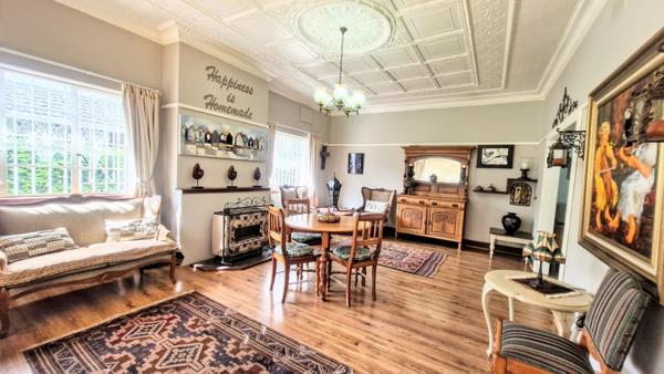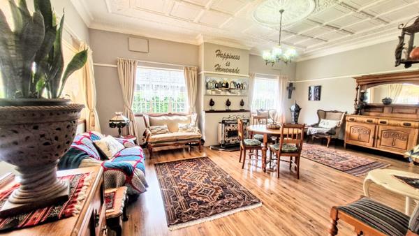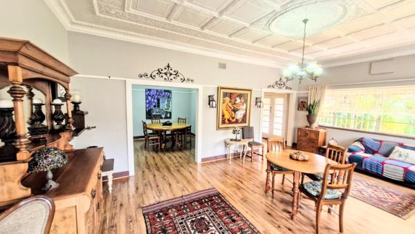 The entrance hall, fitted with laminated flooring, has been thoughtfully converted into a charming coffee lounge. Flowing from here: