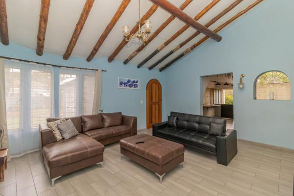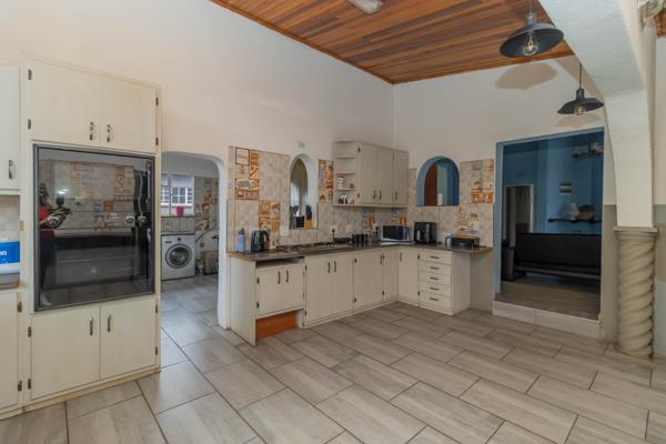 Step inside and be greeted by a warm and inviting lounge featuring a cozy fireplace, flowing effortlessly into the open-plan dining area. The stylish kitchen is a chefs delight, complete with an eye-level oven, gas hob, abundant built-in cupboards, and a separate scullery for added convenience.
