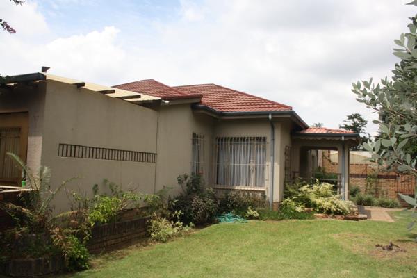 Open plan dining room with laminated floors and double sized living room with study nook and built in fireplace the leads to the undercover veranda with built in braai