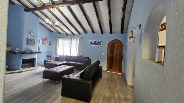 This charming property features unique *vantage wooden poles* elegantly placed on the ceiling, offering a rustic yet contemporary aesthetic. It includes a spacious *4-bedroom* layout, with *2 bathrooms*, providing ample room for family living. The *kitchen* is well-designed, complemented by a convenient *laundry area*. The open-plan *lounge* and *dining room* create a welcoming flow, while the *loft* adds extra versatility for an office or cozy retreat.