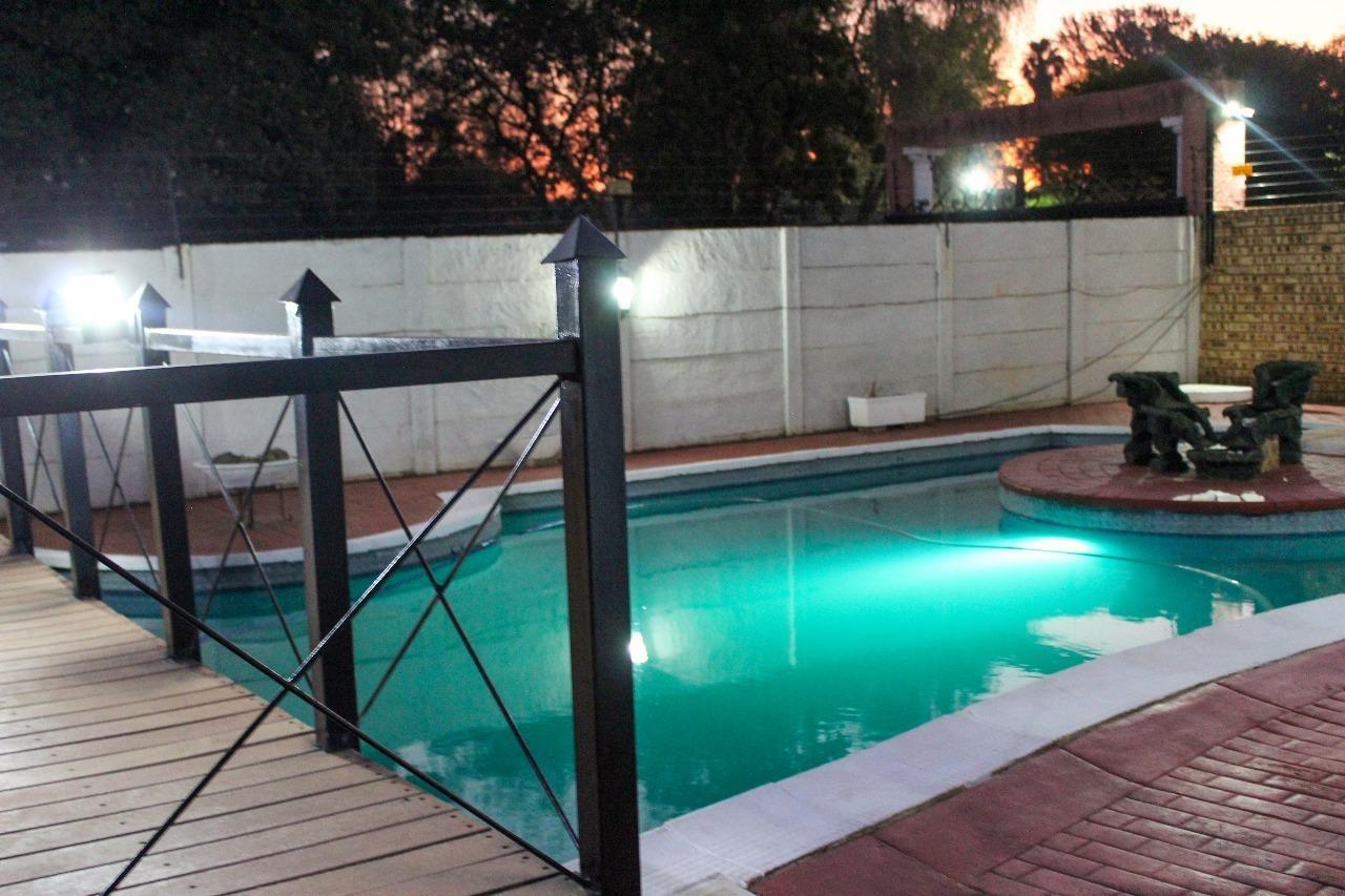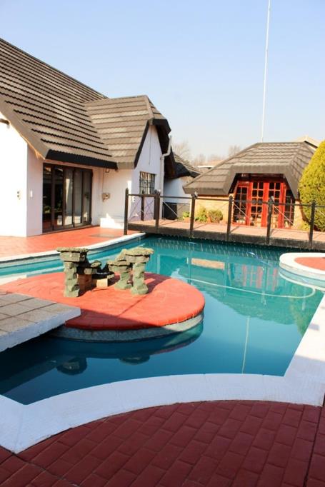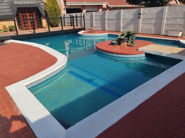 Step outside and prepare to be amazed by the incredible outdoor space! The highlight is definitely the unique, multi-level swimming pool with its very own island seating area and connecting bridges it''s like having a resort in your backyard! There''s also a lapa, a built-in braai, and extensive paving, creating the perfect setting for outdoor entertaining or just soaking up the South African sun. You''ll also find a separate outbuilding, offering versatile space for whatever you need, plus a lovely garden to enjoy. Parking is a breeze with three garages and an additional parking spot.