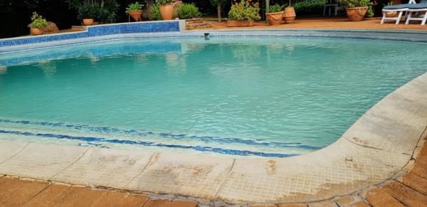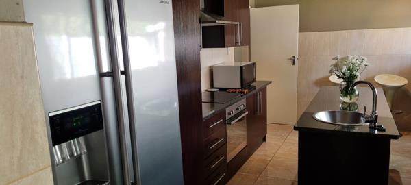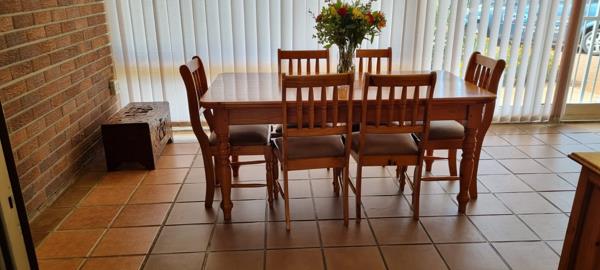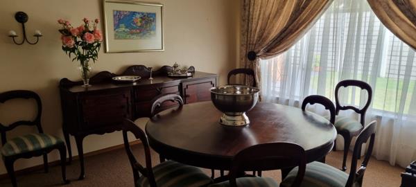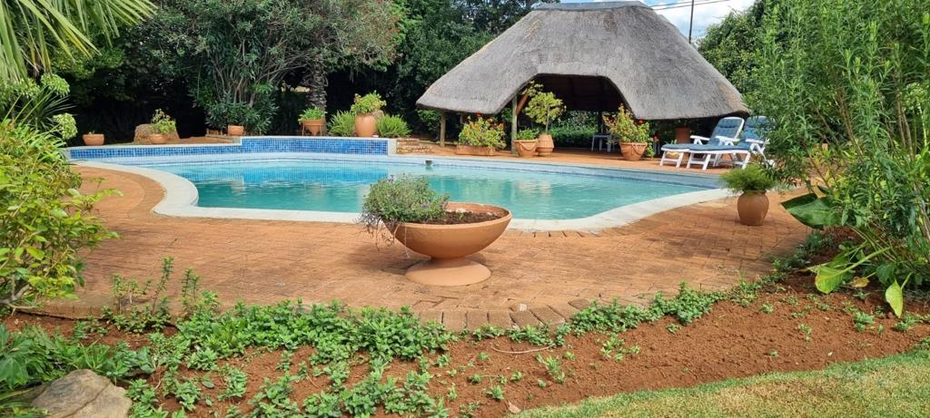4 Spacious bedrooms with lots of built in cupboards of which one has an en-suite bathroom plus a second bathroom. Spotless landscape garden, thatched lapa over looking a perfectly size sparkling pool. Double garage and 4 carports, lots of paving, servants room and toilet. Pre paid meter!