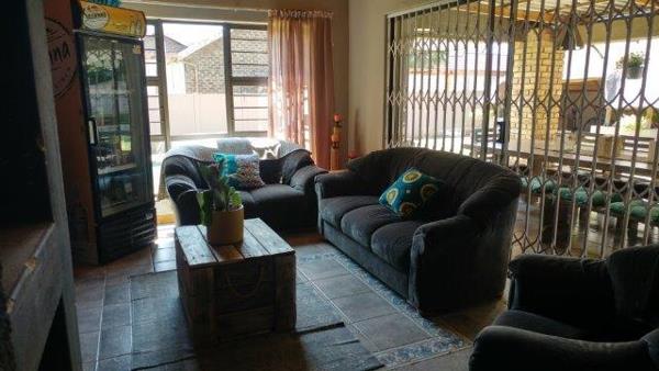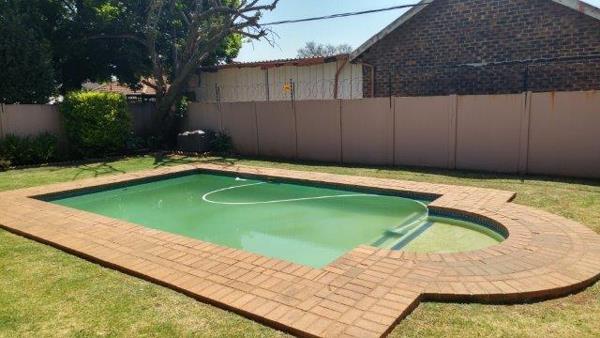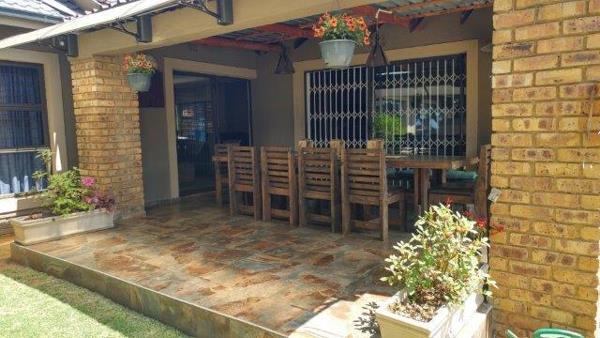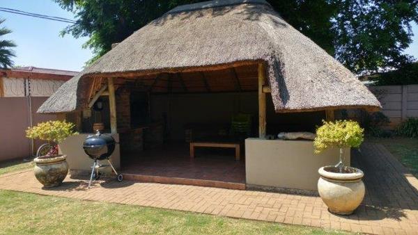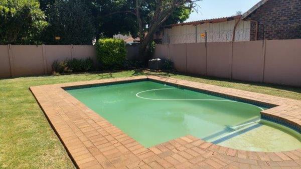 Offers 3 bedrooms, 2 bathrooms main en-suite BIC, study can become the 4th bedroom. Open plan carefully planned kitchen with loads of convenient work areas, leads into dining room and lounge area. A second lounge area with built in braai and sliding doors opens up onto the patio overlooking the delightful pool. Lapa with built in braai and little lawn to worry about. Laundry room. Double automated garage with extra