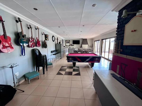 The residence boasts three full bathrooms, with the main bedroom opening directly onto a sparkling pool and lush garden viewscreating a personal retreat within the home. Outdoors, a landscaped garden invites relaxation and family fun, complemented by a corner lapa, a practice green, and all the essentials for elevated entertainment.