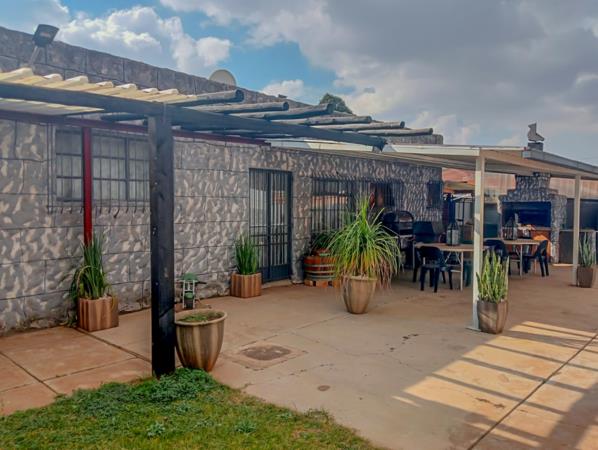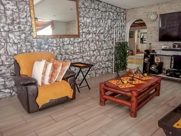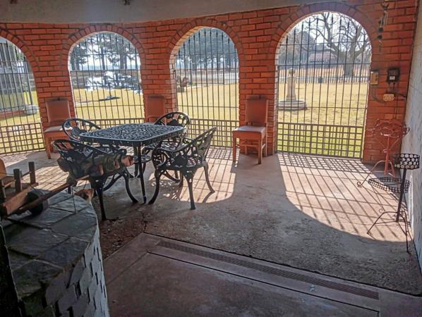 Step outside to a second entertainment area with a built-in braai and a sparkling swimming pool, perfect for sunny days and relaxed evenings. A borehole ensures a reliable water supply, while solar-powered exterior lights and interior battery backup lighting keep your home bright no matter the circumstances.