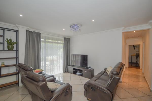 Lounge opens through glass sliding doors to a lovely garden patio, perfect for braais and relaxed outdoor living