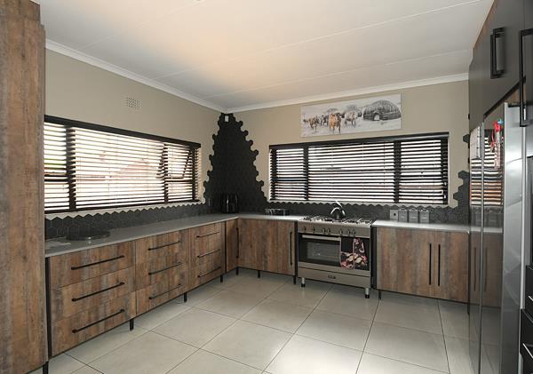 Featuring a well-designed layout, the home boasts an inviting open-plan living area that includes a large dining room and a very spacious lounge, ideal for family gatherings and effortless everyday living. The kitchen is well appointed with ample cupboards and is complemented by a separate scullery and laundry room, adding ease and convenience to daily routines.
