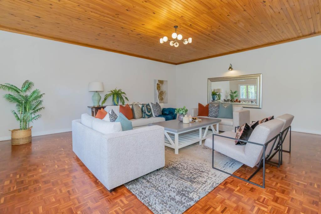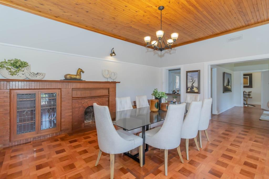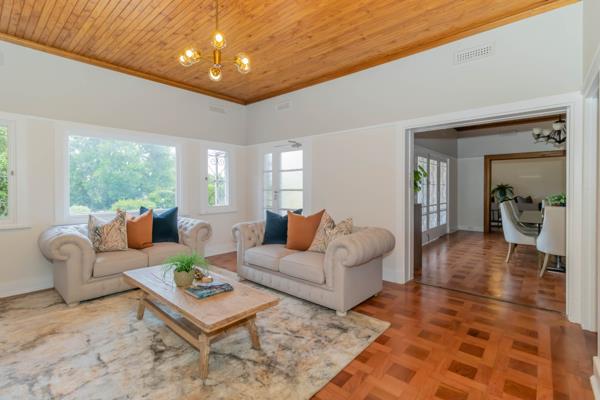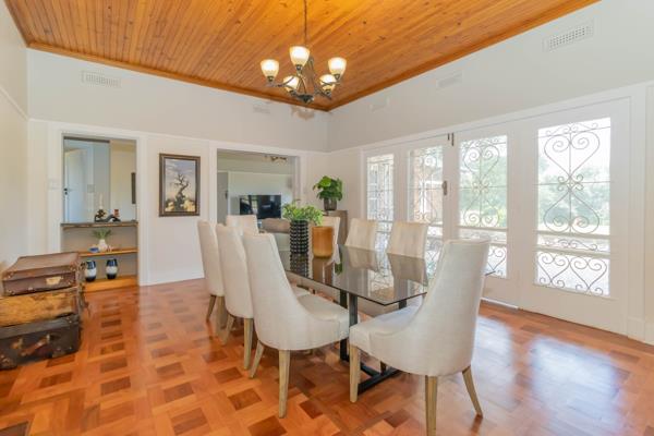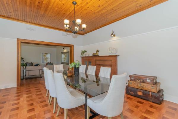 From the moment you enter, the home feels light and spacious, with high ceilings and beautifully maintained parquet flooring setting a warm, elegant tone. The generous living areas include a large formal lounge, a separate dining room ideal for family gatherings, and a comfortable TV room for relaxed everyday living.
