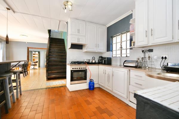 Downstairs, the heart of the home is the chefs dream kitchen, fully fitted with ample cupboard and prep space for easy cooking and entertaining. Flowing seamlessly from the kitchen is a welcoming dining area, an inviting lounge, and a second living space that can serve as a study or TV room. The highlight is the dedicated entertainment room featuring a built-in braai, perfect for hosting guests. Large sliding doors open out onto a beautifully landscaped garden and the pool area, creating a true indoor-outdoor lifestyle.