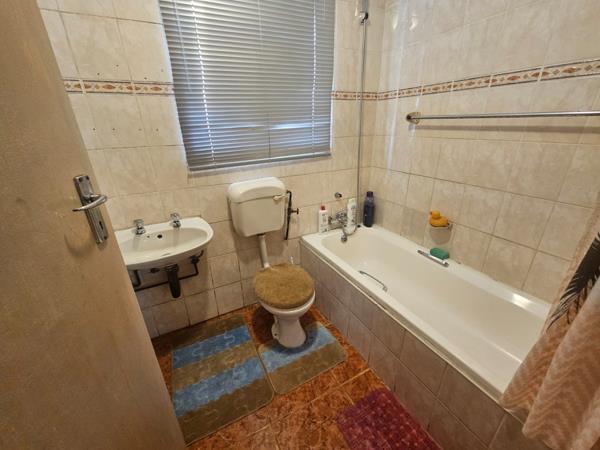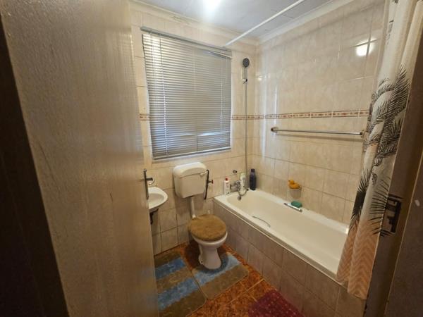 The residence comprises two comfortable bedrooms, each fitted with practical built-in wardrobes for ample storage and tiled floors for easy maintenance. Large windows in the bedrooms invite natural light, creating bright and airy spaces. The single bathroom is fully tiled and equipped with a bathtub, overhead shower, toilet, and basin, catering to daily needs.