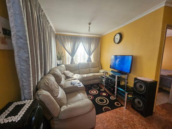 Discover this secure and well-located residential property in Payneville, Springs, Offering a comfortable living environment on a 325sqm erf. The home presents a modern dark grey exterior with robust security features, including a secure gate and burglar bars, ensuring peace of mind. The neatly paved front yard and driveway provide ample parking space, complemented by a covered carport.
