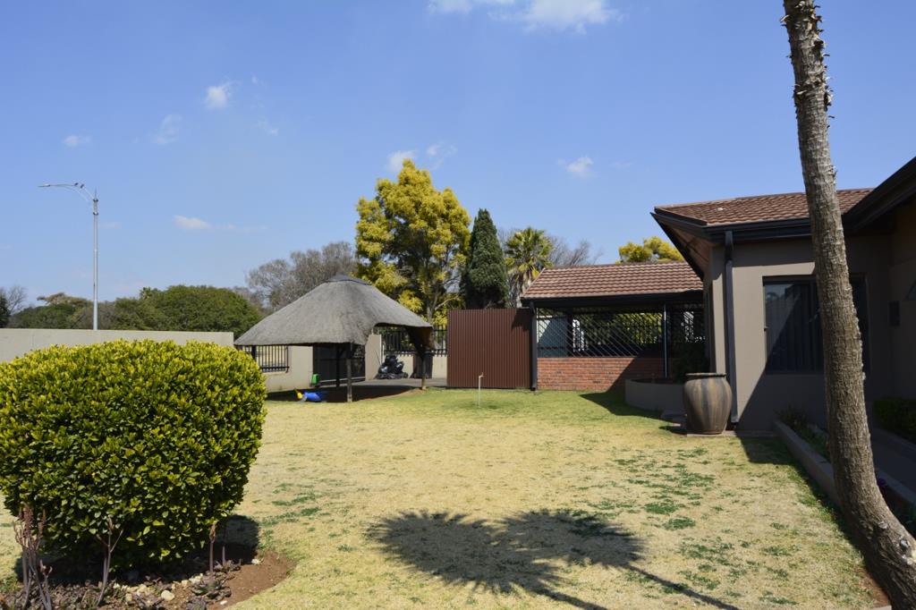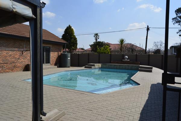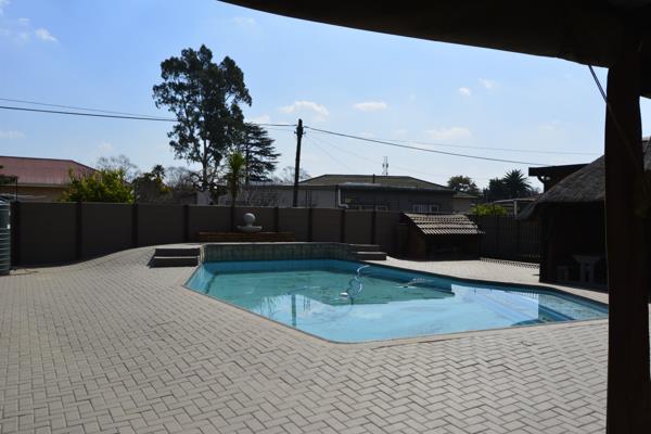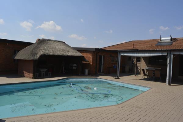 Outdoors, enjoy the sparkling swimming pool, a charming thatch entertainment area, and an entertainment room with a jacuzzi and sliding doors opening to the garden perfect for year-round relaxation. The neat, well-established garden offers plenty of space for pets and children to play, with a tool shed for extra storage.