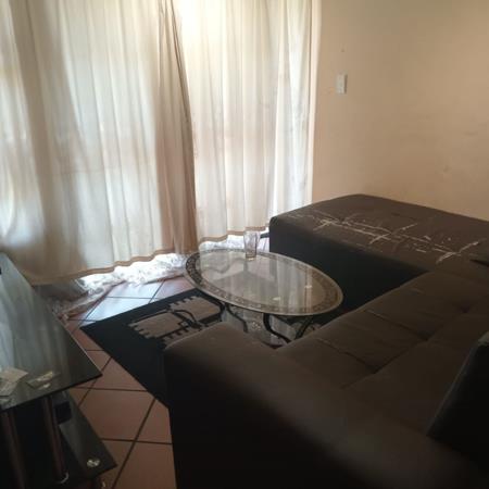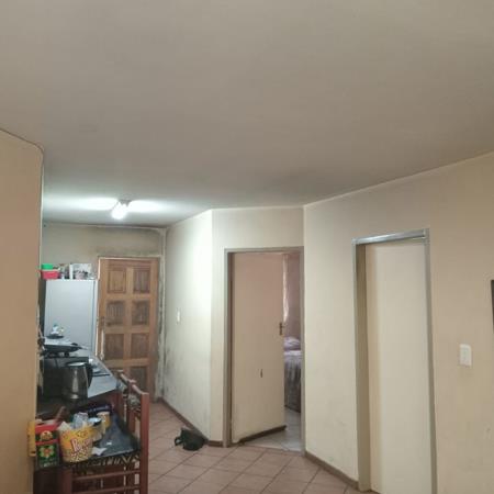 Open plan living room, kitchen with fitted cupboards and stove. Also has single carport and extra parking.