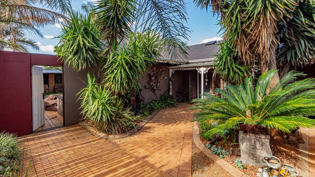 A solar-heated pool is the centerpiece of the backyard, complemented by a separate entertainment area with a built-in braai perfect for weekend gatherings.