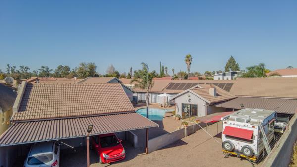 ADDITIONAL FEATURES: includes two double tandem garages (8 cars) and two double tandem carports (8 cars), prepaid electricity, CCTV surveillance, borehole for added convenience and peace of mind, storeroom plus a domestic quarters with a bathroom.