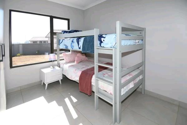 The beautiful house is fitted with modern finishes. Open plan kitchen with a double sink cupboard, Aluminum windows throughout and a solar geyser.