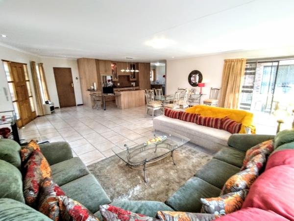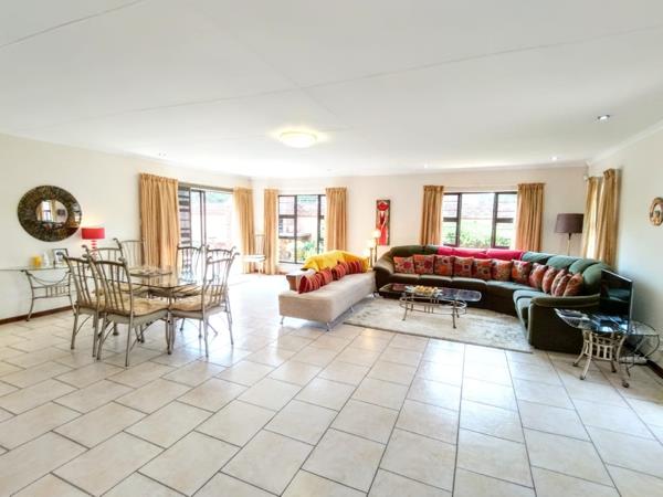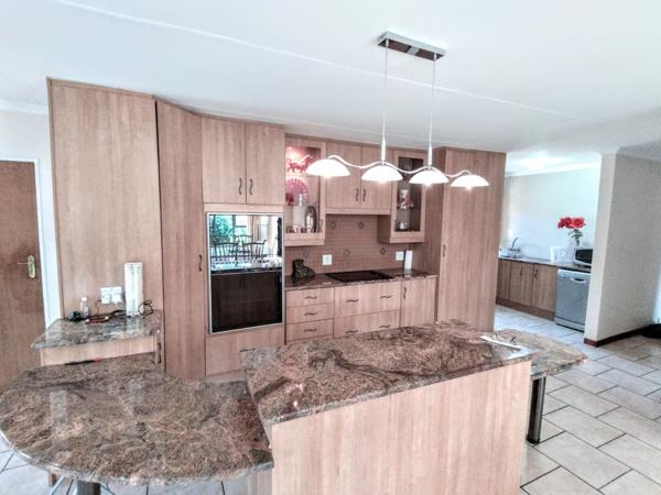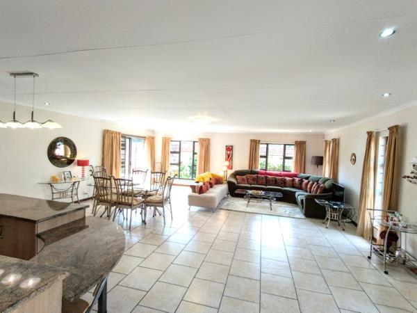 Large living is the order of the day as you will find with this immaculate open plan dining and lounge area. The kitchen is a space that would make your culinary dreams come true! Double eye-level-oven, separate scullery all complemented with wood cabinetry and granite tops.