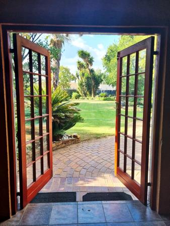 The property offers 4 spacious bedrooms all tiled and ample built-in-cupboards of which the main bedroom has a walk-in closet. A Dining room, study, and a fully fitted kitchen with a scullery and separate laundry. From the spacious TV room, you walk into a well-laid-out thatch roof entertainment area with a built-in bar and braai overlooking a sparkling pool and a landscaped garden. Escape the summer heat and unwind in the sparkling pool.