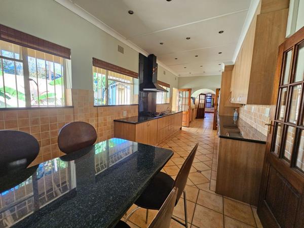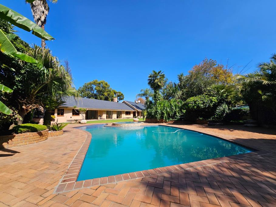 The main house has four spacious, air-conditioned bedrooms of which three has sliding doors leading to the landscaped garden. The fifth bedroom has an en-suite bathroom and could easily be used as a flat.The house offers a gourmet kitchen with scullery, home office, air-conditioned lounge, entrance hall, dining area, tv room, guest toilets and so much more. Exquisite finishes throughout.