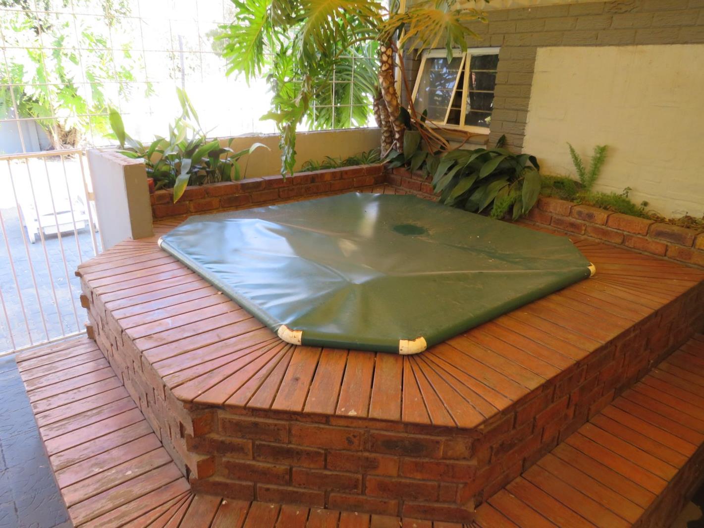 3 Bedrooms with built in cupboards, full bath room with a bath and shower , spacious lounge and dining room, spacious kitchen with wooden cupboards , prepaid electricity, separate laundry , spacious outside entertainment area with a HOT TUB(Jacuzzi), swimming pool, staff quarters, double garage and a garden. PLEASE NOTE: APPROVED PLANS FOR A SECOND BATHROOM AND GARDEN FLAT, AVAILABLE.