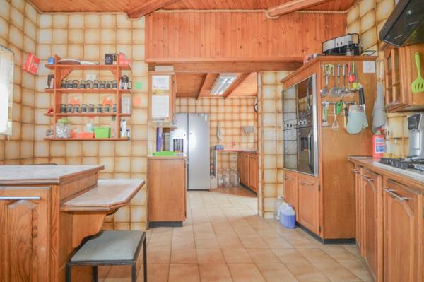 The spacious kitchen is a chefs delight, featuring ample built-in cupboards, a double eye level electric oven, 5-plate gas hob, and an extractor fan.