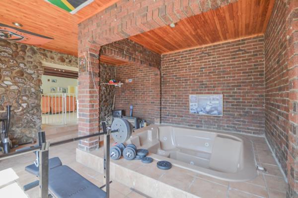 Enclosed lapa with built-in braai, overlooking the sparkling swimming pool