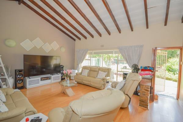 Nestled within a secure and sought-after enclosure, this immaculate family home offers the perfect blend of comfort, style, and entertainment. Boasting 4 spacious bedrooms, 2 pristine bathrooms, and a convenient guest toilet, it features generous living areas including a welcoming lounge, elegant dining room, and an entertainment room that flows seamlessly to a covered patio with a built-in braai ideal for relaxed gatherings.