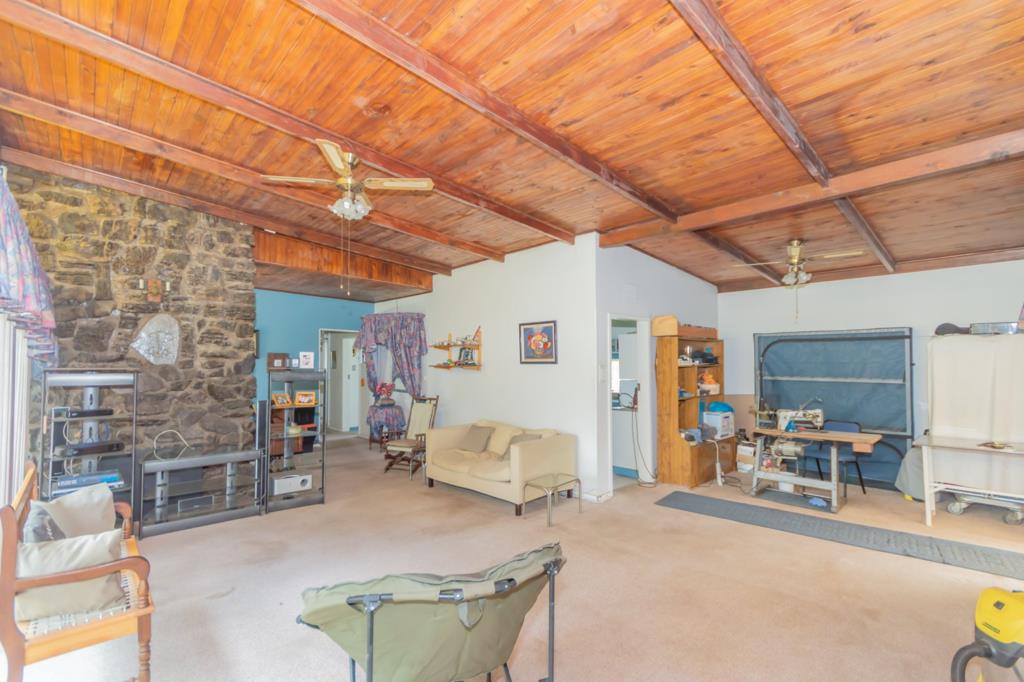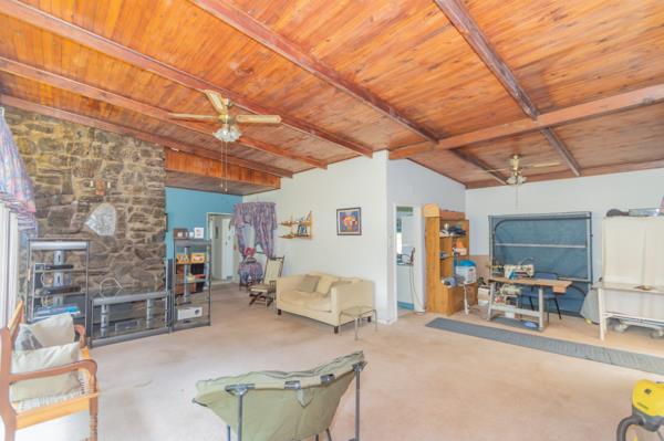Large under-roof entertainment patio, perfect for gatherings in any weather.