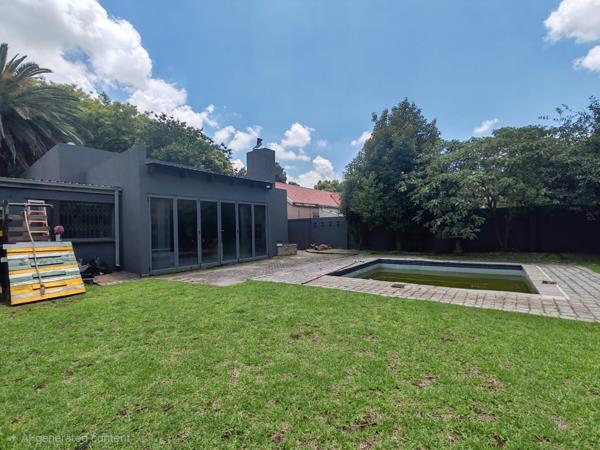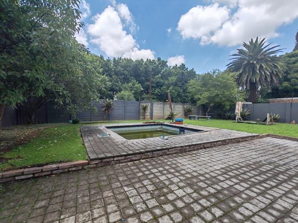 Very large yard with a swimming pool