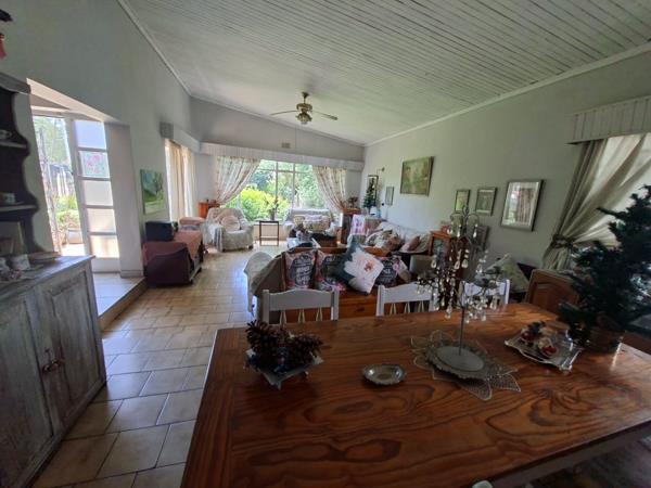 Entering the main house from the front, you are welcomed by a lovely garden filled with colourful flowers, setting a warm and homely tone. Through the front door, the home opens into an open-plan dining and lounge area situated to the far left, offering a spacious and comfortable living environment ideal for family gatherings.