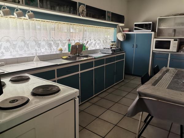 Outdoors, the generous 1175 sqm erf provides a substantial green lawn and established garden beds, perfect for relaxation and outdoor activities. Practical covered parking is available via a functional carport, capable of accommodating multiple vehicles, ensuring convenience for residents and visitors alike.