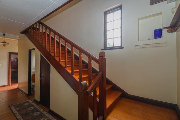 Step into a home that beautifully bridges past and present. With its graceful lines and character-filled exterior hinting at Tudor inspiration, this property radiates warmth, charm, and a sense of quiet history &mdash yet remains in impeccable condition, ready for modern living. The moment you enter, you&rsquore welcomed by polished wooden floors and a grand staircase that immediately capture your attention. The craftsmanship is undeniable &mdash from the rich teak bannisters to what appears to be Oregon pine or yellowwood flooring &mdash each detail lovingly maintained to preserve its natural beauty. To the right of the entrance, the spacious lounge invites relaxation, complete with a statement fireplace that anchors the room. Just off the lounge is a cozy pub &mdash an intimate space perfect for entertaining, or easily transformed into a private study or home office. Turning left, there is a guest toilet so that guests do not have to go all the way upstairs .The passage then leads way to a large dining room that sits conveniently beside the kitchen. The kitchen itself feels like something out of a period film &mdash warm, functional, and filled with charm. A classic gas stove takes pride of place, while a generous walk-in pantry ensures there&rsquos no shortage of storage or workspace. As you ascend the staircase, the smooth, gleaming wood underfoot tells the story of a home cared for through the years. Upstairs, three bright and welcoming bedrooms await. The main suite offers ample cupboard space and an en-suite bathroom, while the other two bedrooms share a beautifully fitted family bathroom, complete with a double shower. Beyond the main house, practical features abound: a double automated garage, a carport accommodating four vehicles, and an external office area that could easily be converted into a self-contained flatlet. There&rsquos also a dedicated laundry room, storage area, and the original outbuilding with outside toilet &mdash all neat and well-kept. For peace of mind and convenience, the property includes prepaid electricity, three-phase power, a 2500 L JoJo tank, solar system with only two panels needing only new batteries, and a generator for backup power. It also has a gas geyser for the kitchen and the bathroom with the shower up stairs. There is also an air conditioner in the main bedroom and in the office. Perhaps the most enchanting feature is the small private chapel nestled in the garden &mdash a tranquil retreat perfect for quiet reflection or meditation. This remarkable property offers the best of both worlds &mdash the romance and craftsmanship of an older home, paired with the practicality and comfort of modern living. It&rsquos not just a house it&rsquos a piece of history, beautifully preserved and ready to be loved for generations to come.