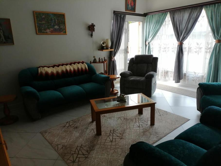 The outdoor space is equally inviting, offering a cosy entertainment area with a built-in braai, perfectly positioned to enjoy the beautifully maintained private garden.