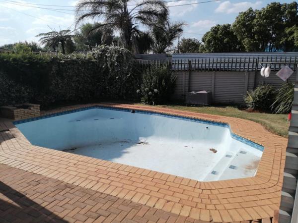 Private back yard boast swimming pool for summer gathering and entertaining.