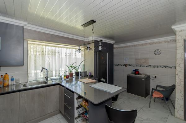 The home features a bright open-plan lounge and dining room, creating a warm and inviting space that is perfect for family living and entertaining guests. The modern fitted kitchen is well-designed with ample cupboard space, making meal preparation both easy and enjoyable.