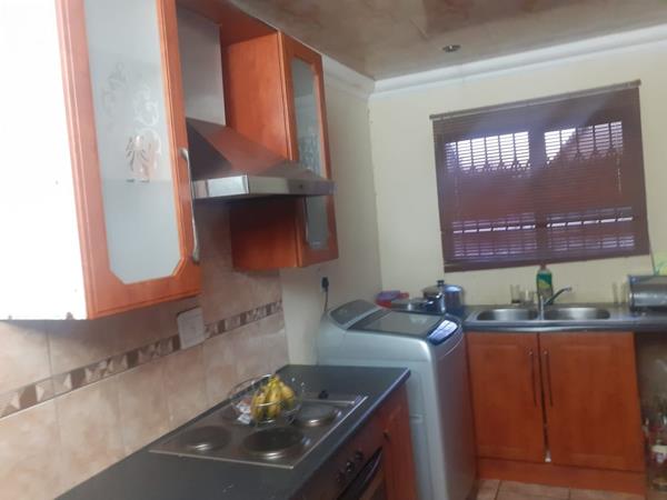 Inside you''ll be greeted by a warm welcome of a mother''s kitchen that will allow you to have a freedom to create your dream culinary space and make it truly your own. This house offers an open plan living area designed for family times. Featuring three bedrooms, a Master bedroom that comes with an En-suite for added convenience and a walk- in Closet. The two bedrooms are tiled and only one has a Built in Cupboards. Its is fully walled fenced with a manual gate.