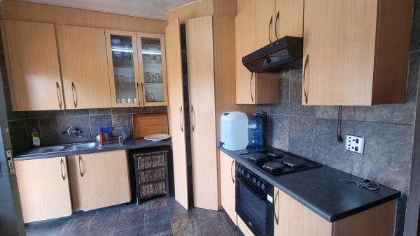 Modern kitchen with ample cupboards and working space. Fully tiled bathroom comprising of corner bath, basin, shower and toilet.