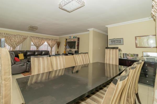 The heart of this home extends outdoors, where a sparkling pool glistens in the sunlight the ideal spot for lazy summer afternoons, weekend braais, and making memories. A double garage provides secure parking and extra storage, while the elegant tiled roof adds a touch of classic style and lasting durability.