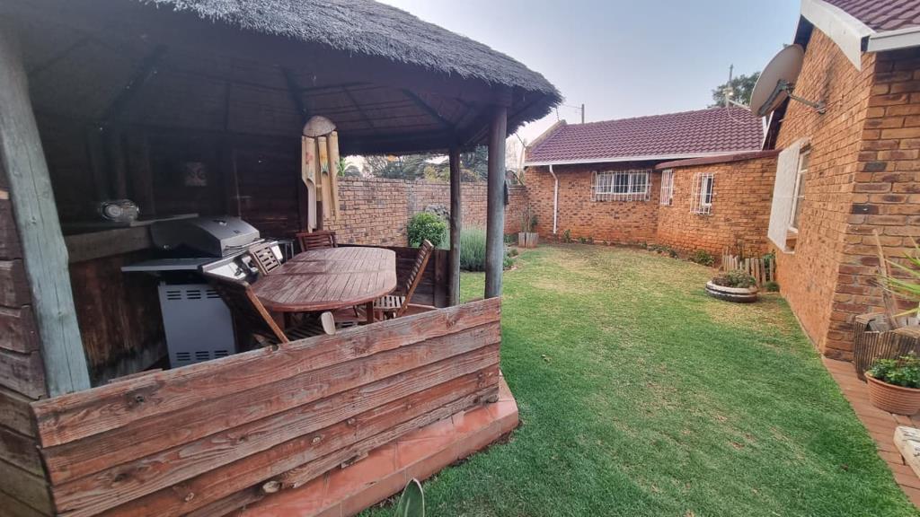 Outside a charming thatched Lapa is perfect for entertaining. Enjoy peace of mind with a double remote access garage (with direct home entry) and a secure electric fence and gate.