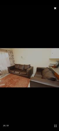 The home features three generously sized bedrooms with built-in cupboards, complemented by two well-appointed bathrooms, including a shower. The fully fitted kitchen with a gas stove flows seamlessly into a cosy lounge and dining area, creating a warm and inviting space ideal for family living and entertaining.
