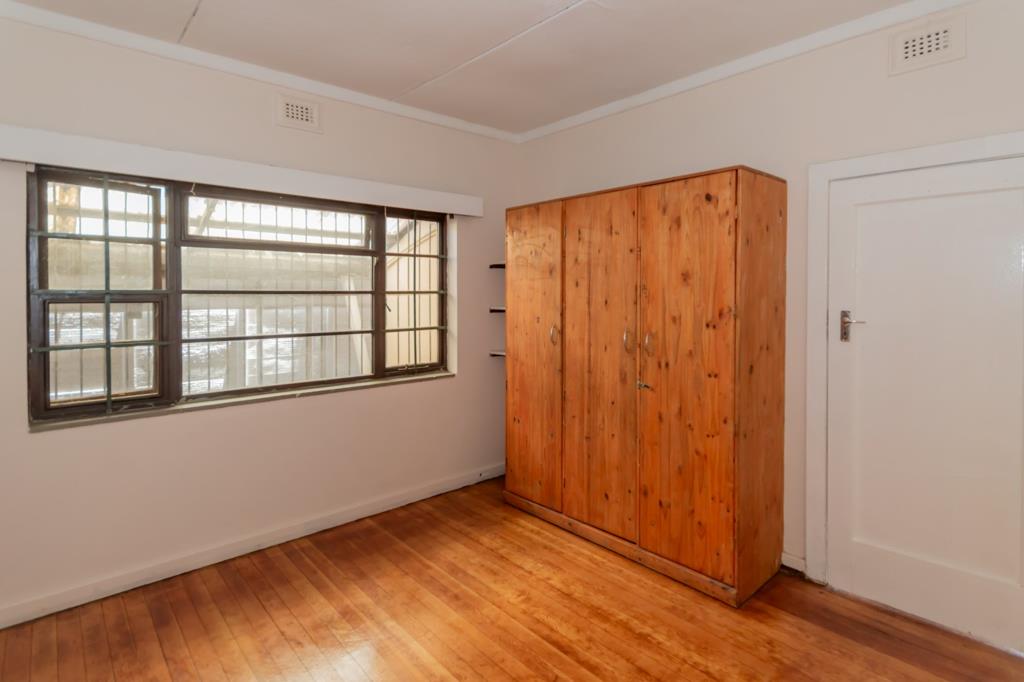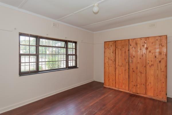 Two bedrooms, including a main bedroom with wooden floors and built-in cupboards