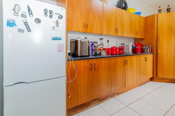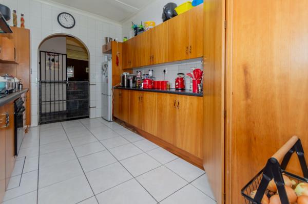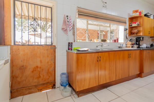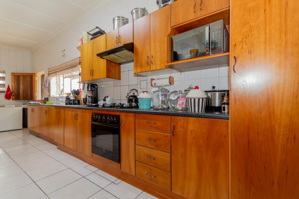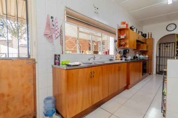 Four sunlit bedrooms with built in cupboards and tiled or carpet free floors provide practical, easy living, while two full bathrooms including a main en suite ensure convenience for everyone. The kitchen is well appointed with built in cupboards, a gas hob and a connection for a washing machine, extending into the dining area for seamless everyday meals and entertaining