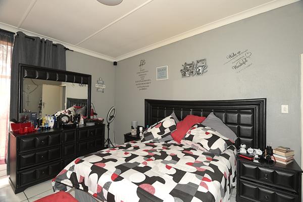 The home offers three generously sized bedrooms, all fitted with built-in cupboards. The main bedroom features a private en-suite bathroom, while the family bathroom is complete with a shower, bath, basin, and toilet to comfortably serve the rest of the household.