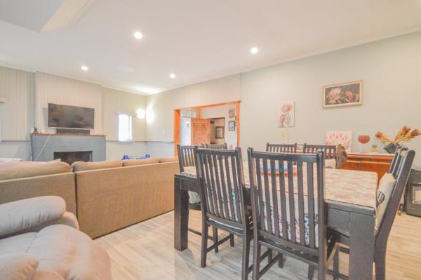 The property features 5 generously sized bedrooms and 2 bathrooms, providing ample living space for the whole family. A study offers the ideal space for working from home or a quiet reading area. The open-plan lounge and dining room, complete with a cozy fireplace, creates a warm and inviting atmosphere for family gatherings and relaxation.