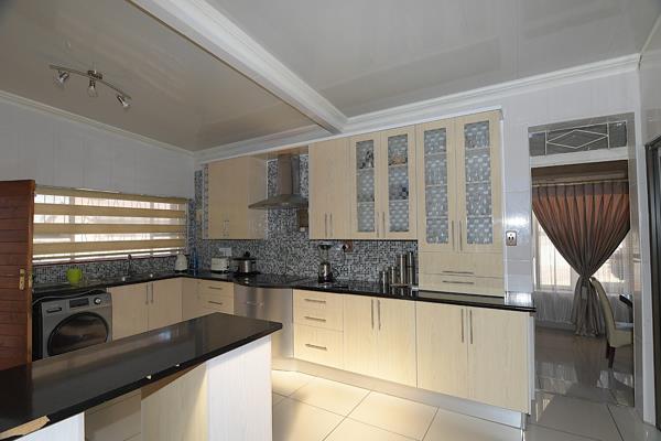 The heart of the home is a modern kitchen with ample cupboard space, seamlessly flowing into a family TV room with a cozy fireplace, an open-plan dining area, and a formal loungeperfect for both everyday living and entertaining.