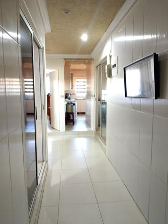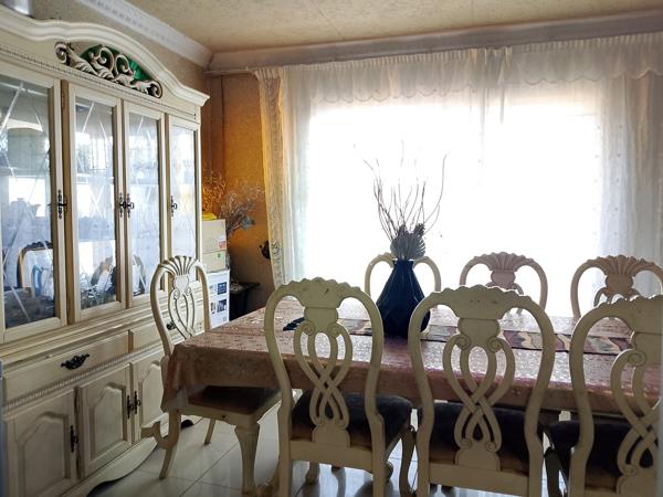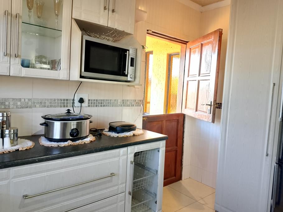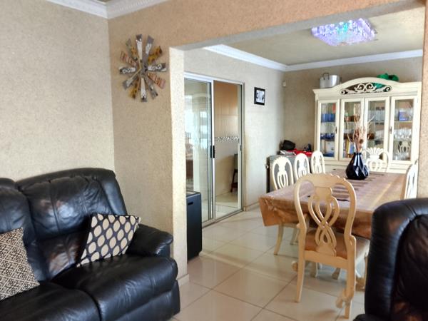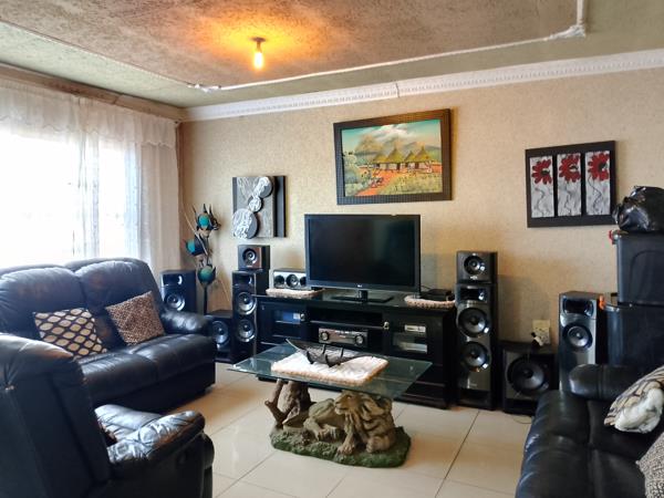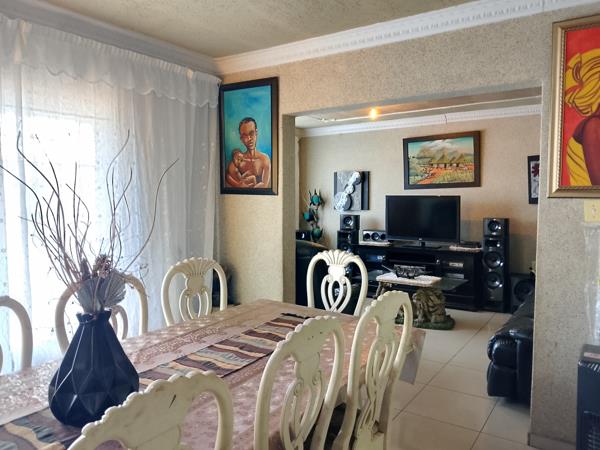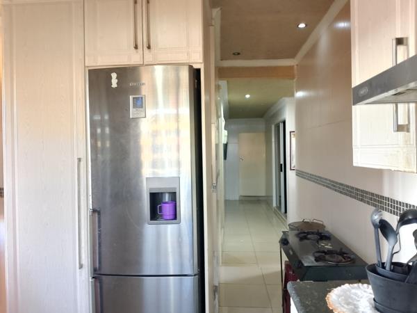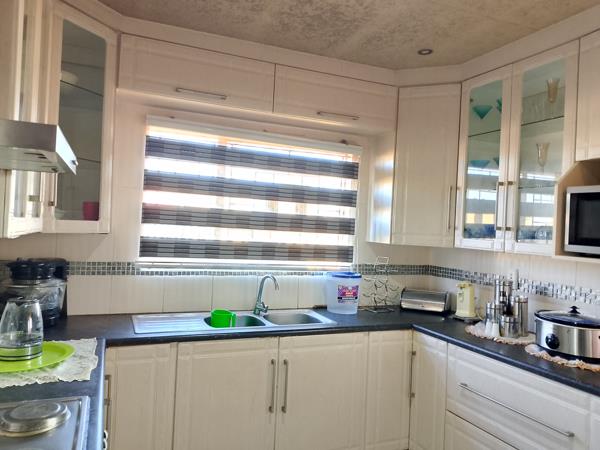 The property offers 3 spacious bedrooms with 2 fitted with built-in cupboards. The open plan lounge and dining area create a welcoming and comfortable living space. There is 1 bathroom with a bath, basin, and toilet.